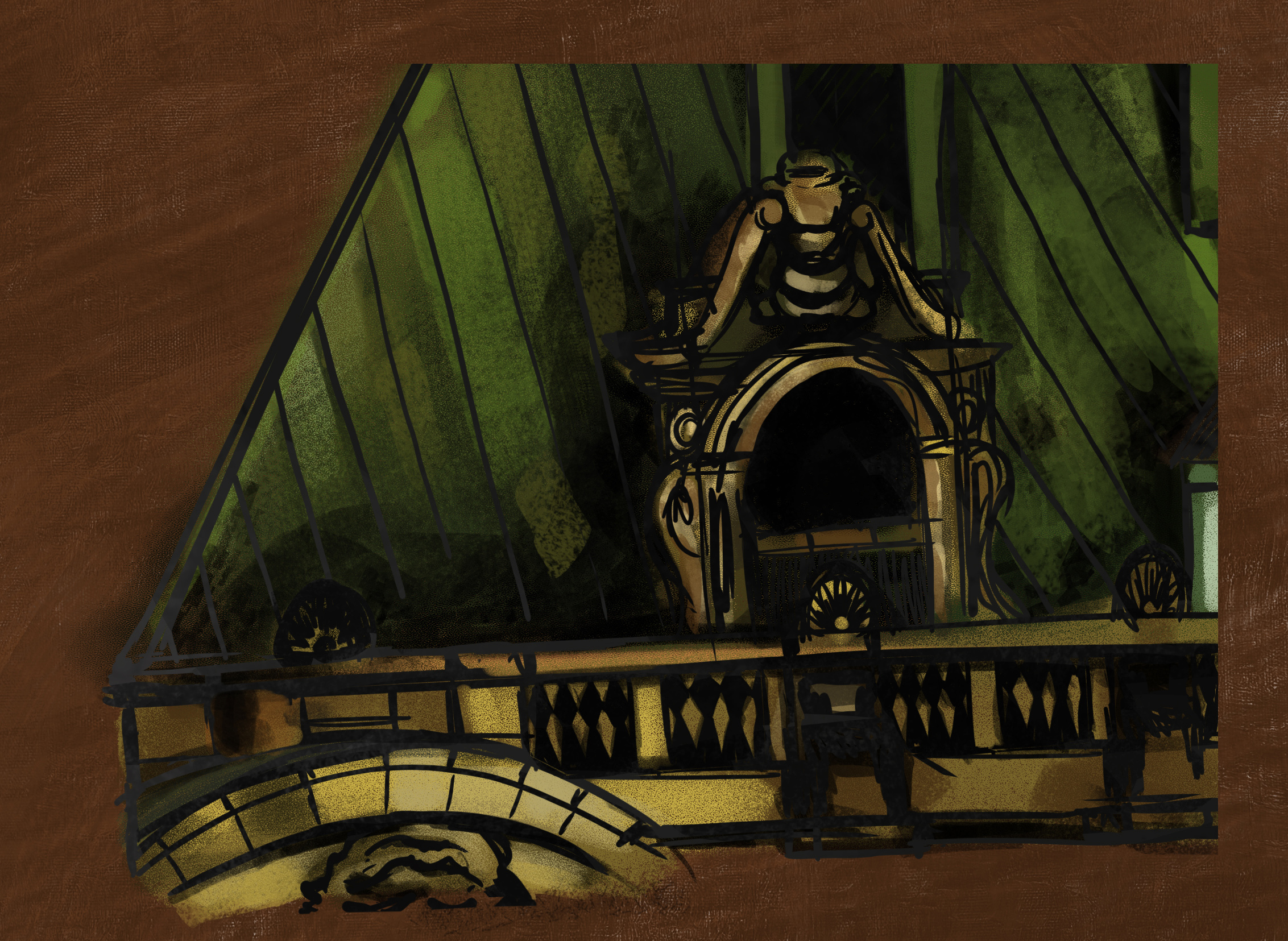 Alright here's the sketches for the next one - was really feeling a western scene. Not sure about the color yet, I'm focusing on the linework since I haven't gotten a good palette yet.
