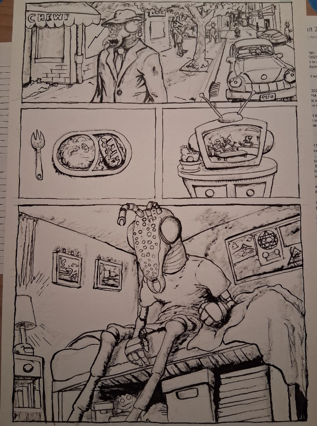 I just finished inking the last page of my quasi-autobiographical comic/zine and I will start lettering and writing up the remaining 9 pages of supplemental divine madness this weekend. I'm aiming to put this up on Kickstarter for physical copies, but I'm not sure about digital distro because these will be limited editions with handprinted covers. Can I promoting that kind of thing on the forums? Either way, I'll be putting it on my social media. I'm hoping to get that squared away before the end of January.