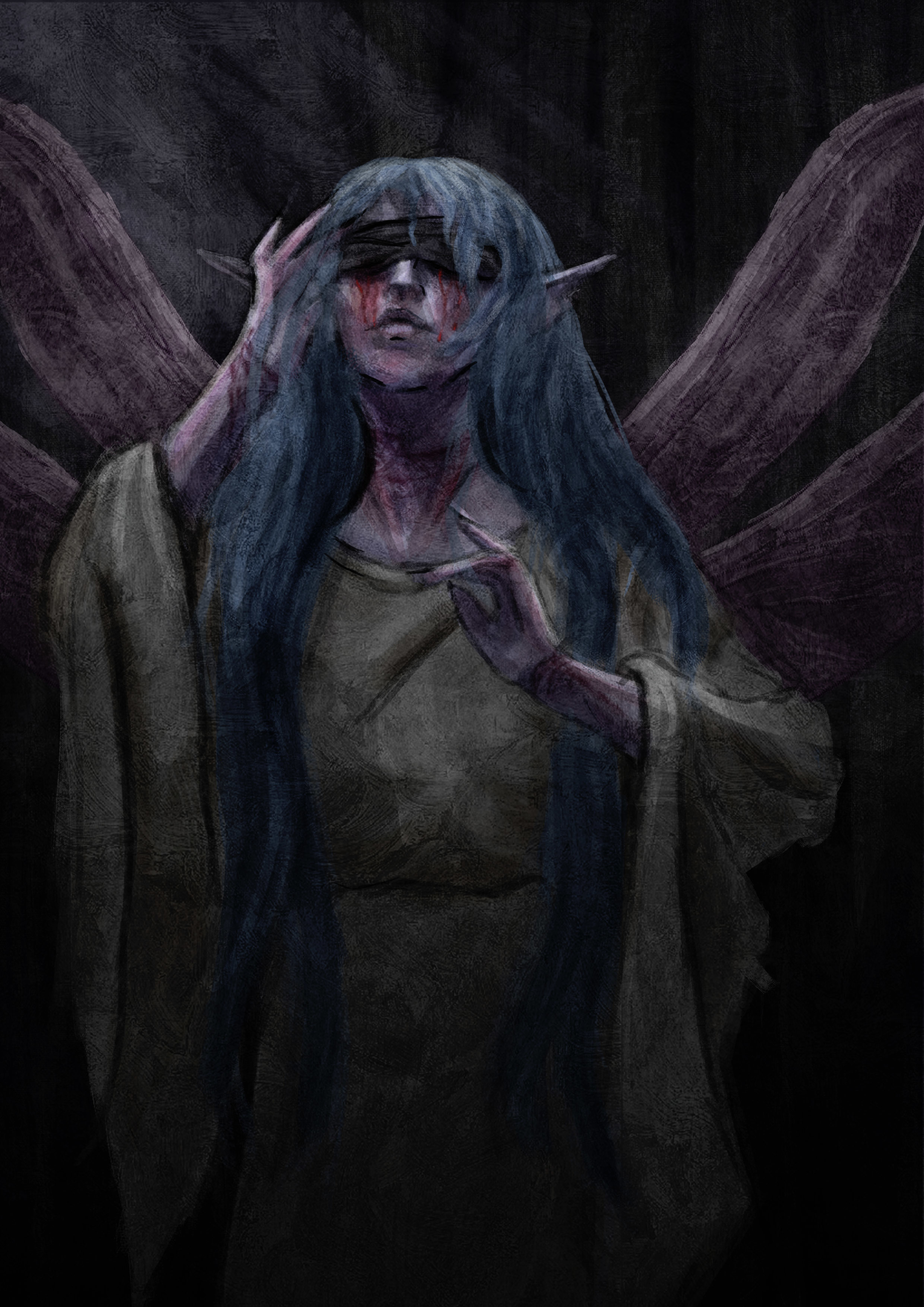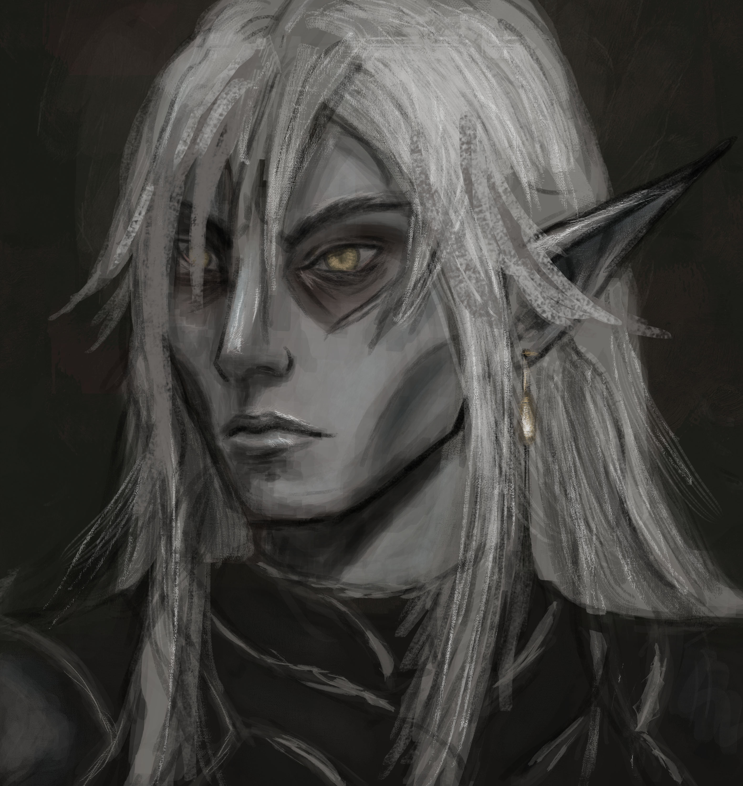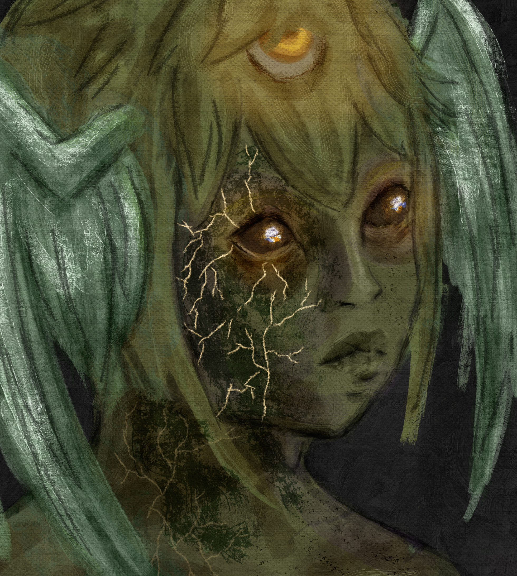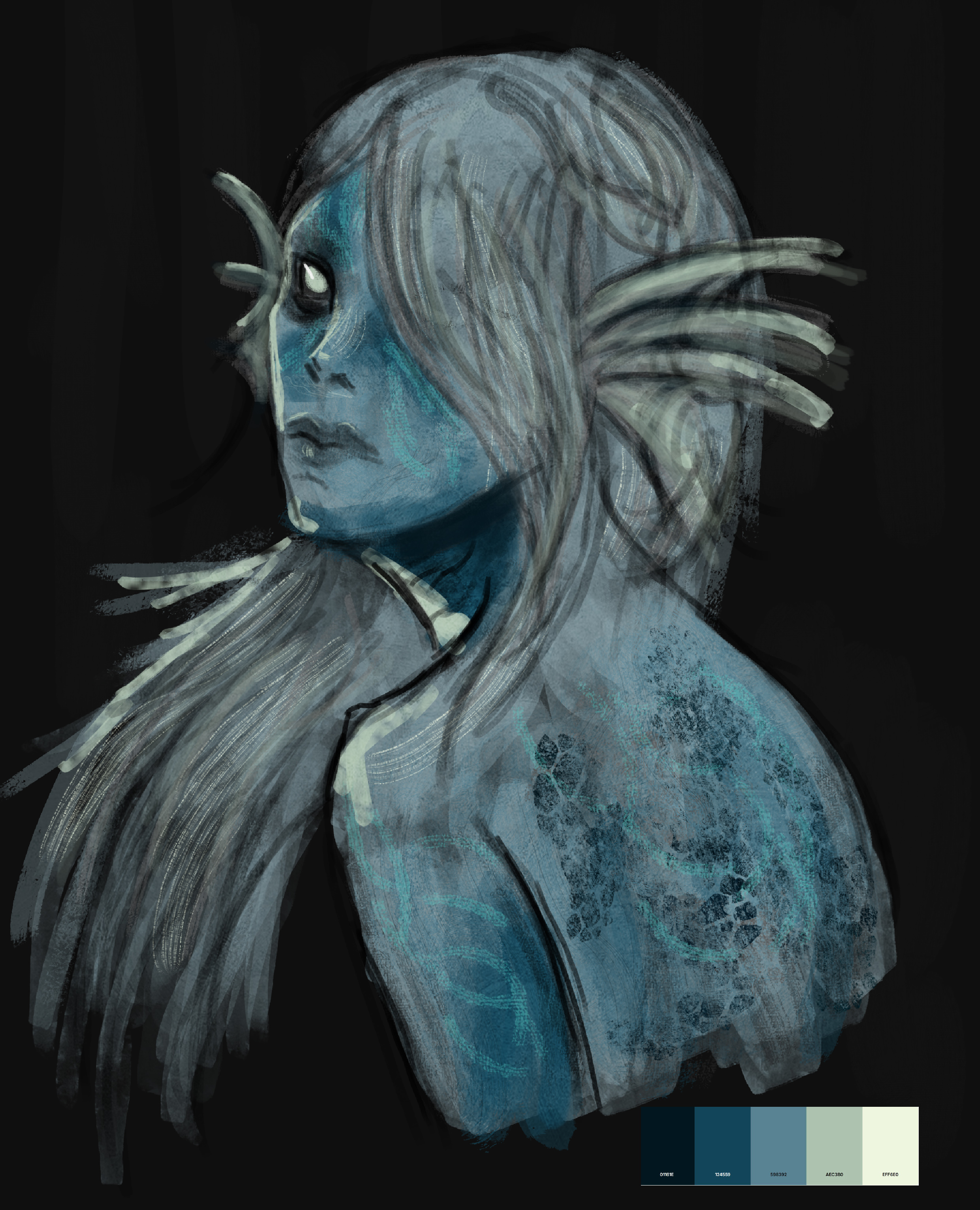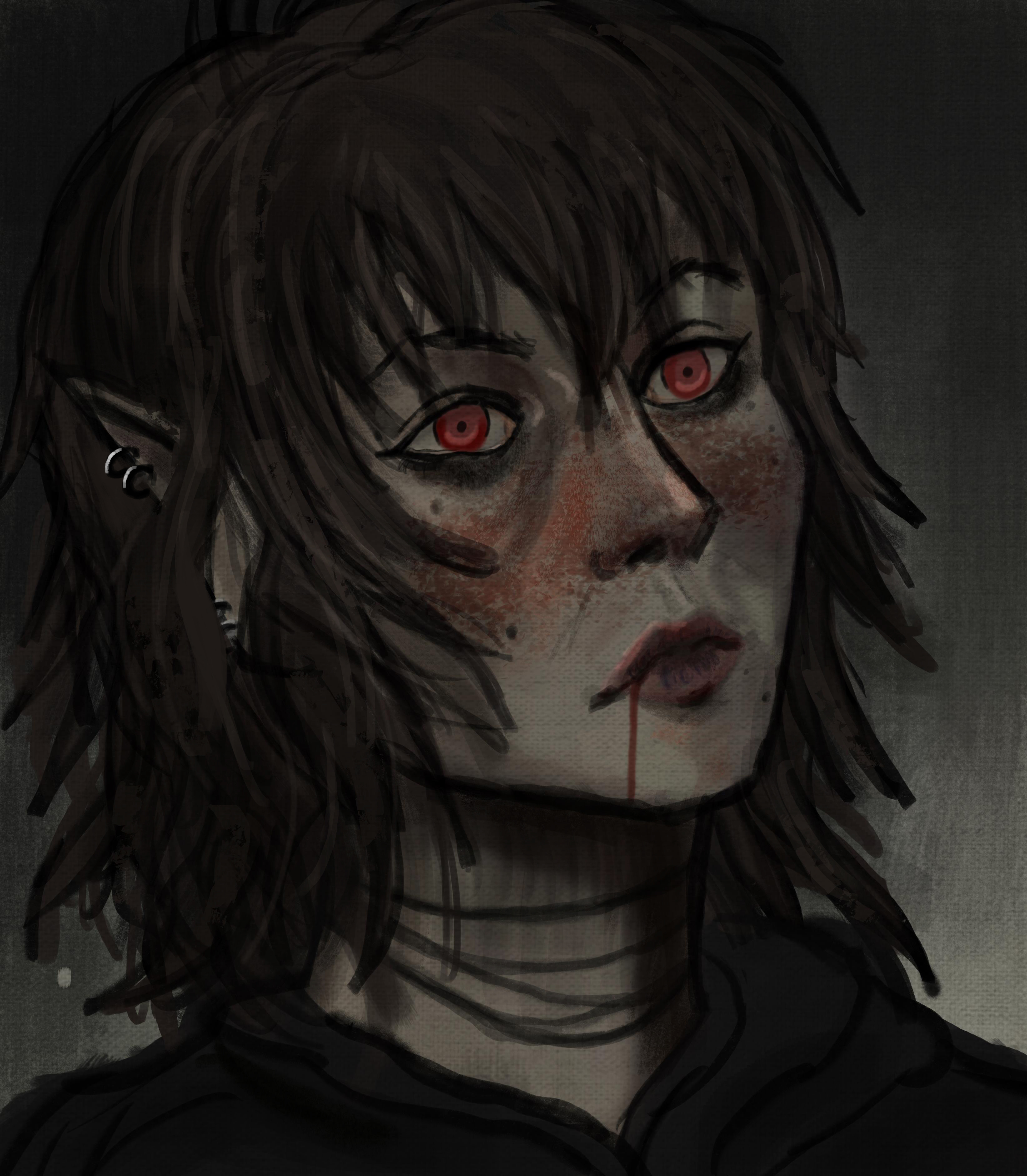 And lastly a self portait. My husband ( I feel like I am talking about him non stop in this post, sorry xD) is color blind and sees my greenish eyes as red, so I went with that one. I am pretty bad with facial expressions, because I come from a manga background as a teenager and find it extremly hard to implement this overstylized knowlegde into my current artstyle so enjoy my emotionless face instead. It was the mentally most challenging work up to date, especially to draw all the imperfections and not shy away from it.