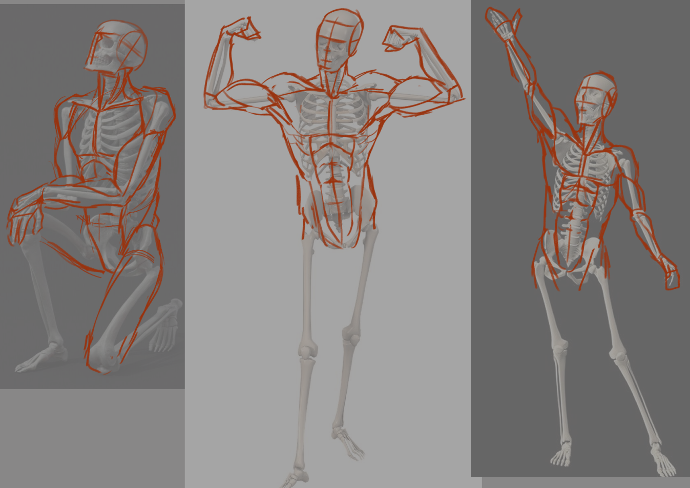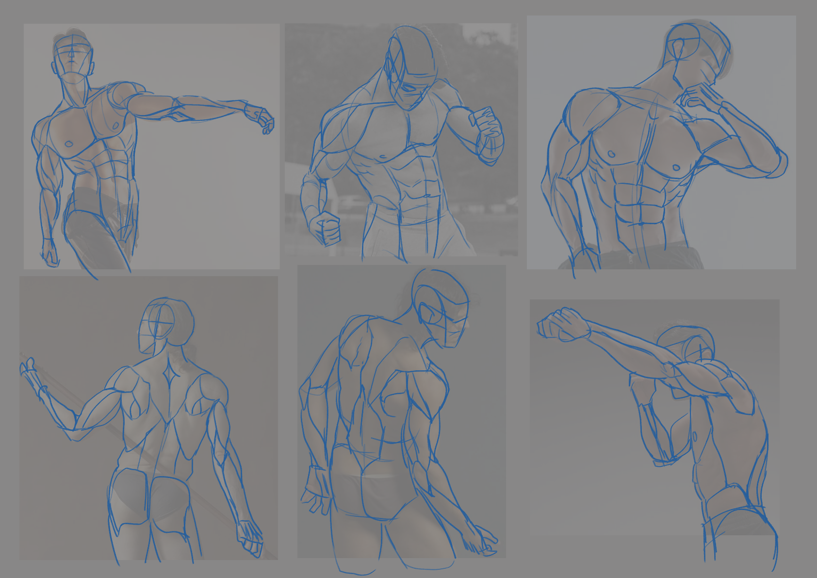 Your anatomy studies are looking good. I don't know if it will help you or not, but I often have to remember that the volume of the muscles deform based on contraction/relaxation and each muscle is different in how it bunches up. Beyond proportions, I find that comic illustrations often don't adhere to realistic contraction patterns.