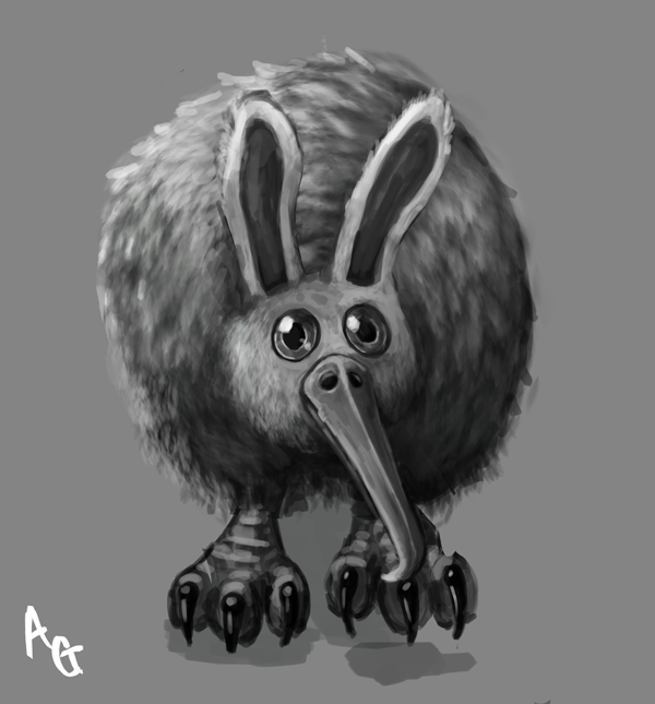 I'm really ecstatic to be able to join a community of pros and learner's alike, been itching to get back into an environment that isn't business orientated! Like every other art blog I'll post my sketches, explorations, finished works and in-progress pieces. I'll probably be drawing a ton of "Jeffry" which is my little original mash-up of a kiwi bird and a rabbit.