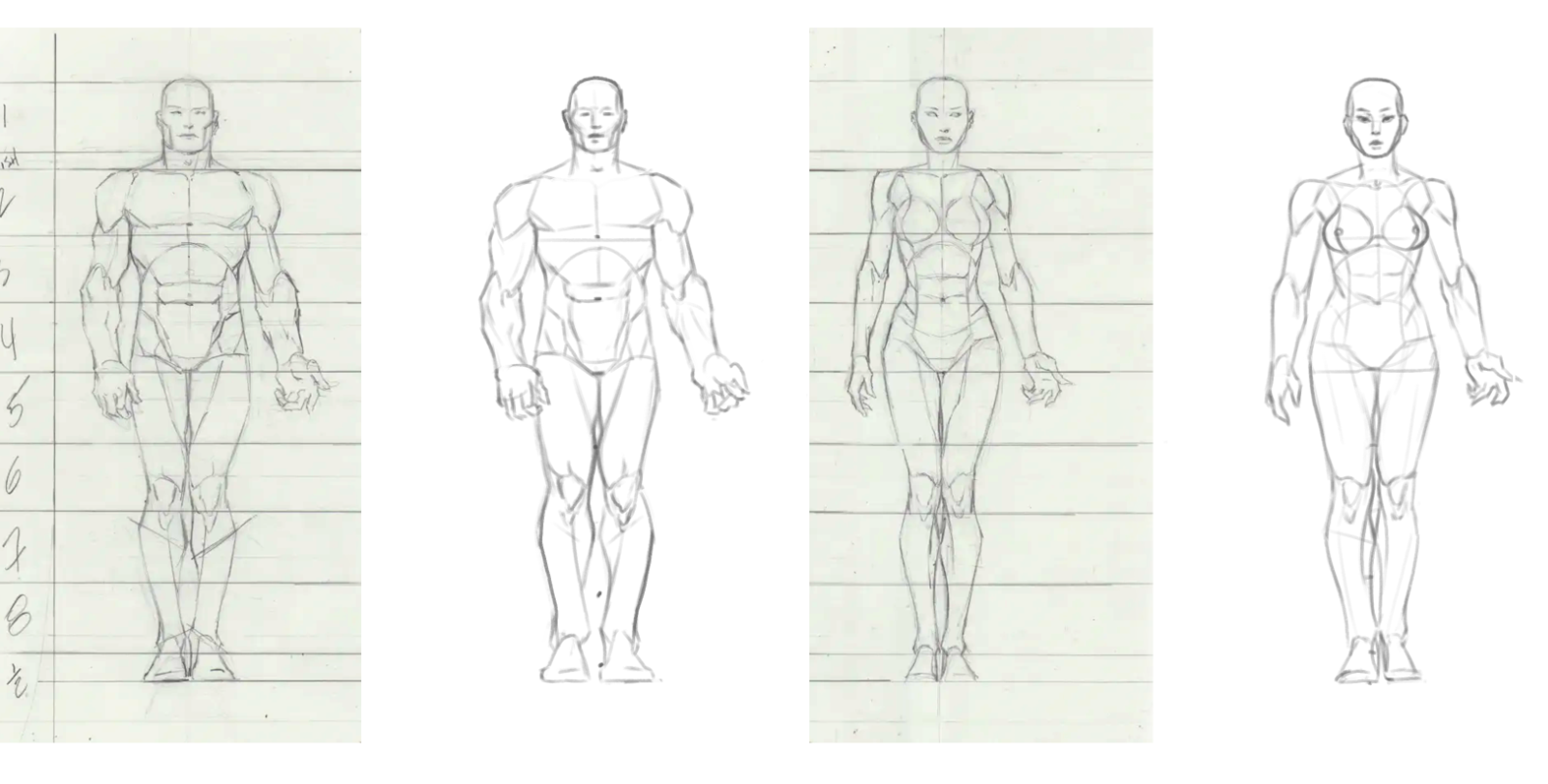 Nothing too serious for now. Just a couple proportions I did, 2 times quicker than yesterday. I need to try and simplify the volumes and musculature if I wanna go faster. Nevertheless, I hope that in the near future I learn it better. For now all I need to know is some analogies, like: