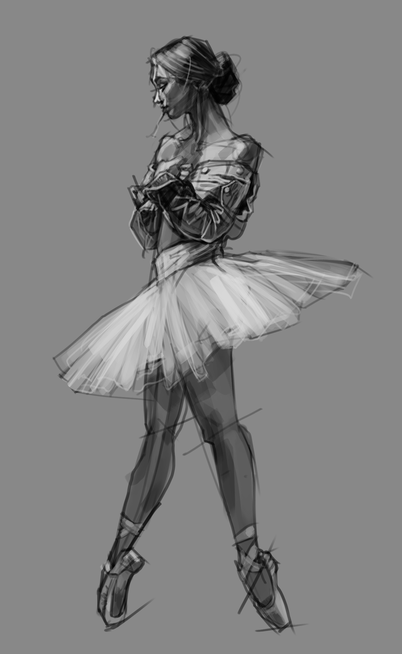 I tried to pay more attention to making the midground and background of a similar, and lighter value. But for the reference, I found that light and local values kinda make the standard dark, medium, light value distribution a bit mixed. So I think I relied on more of the shadows to help me know that standard order of values. Hopefully it's evident that the darkest shadows are in foreground.