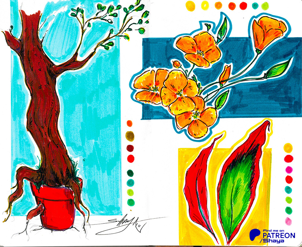 This is part of my travel sketchbook and made all of these studies with only watercolour markers and ink pen.I hope you like it =]