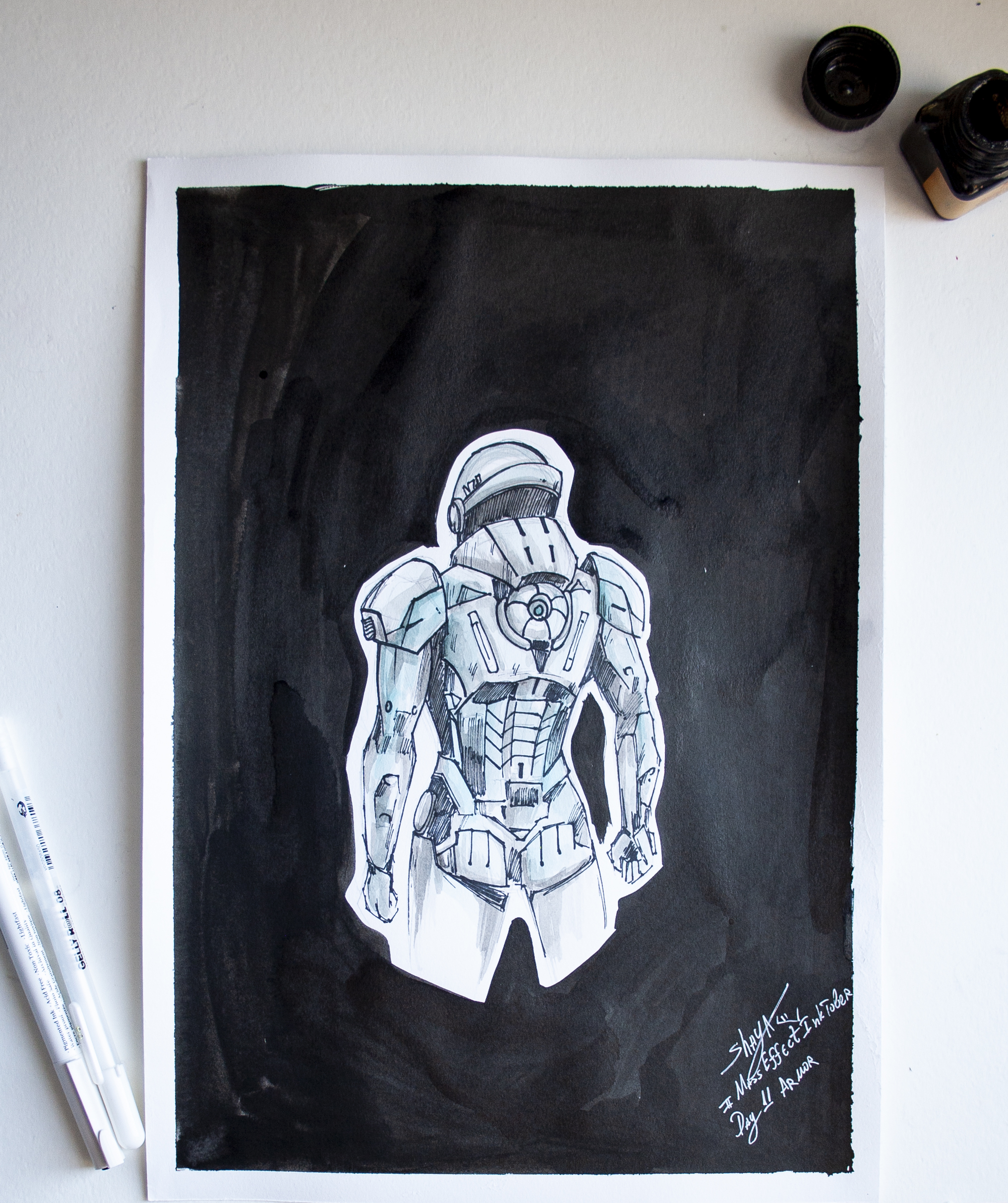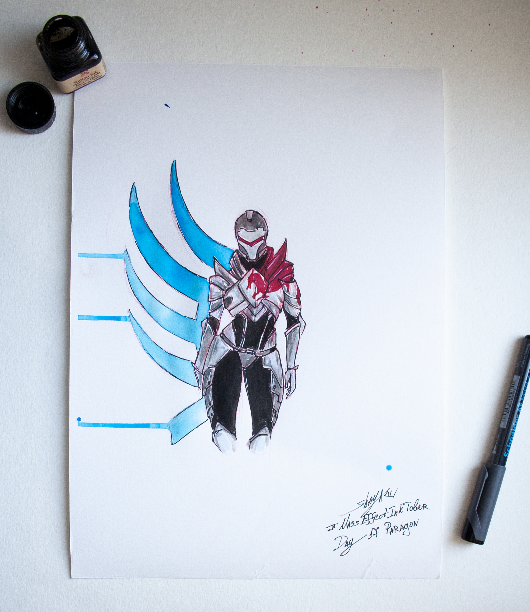 I used for this one Indian Ink, Orange ink, Blue ink, Red pencil and for paper I Fabriano Academia =]