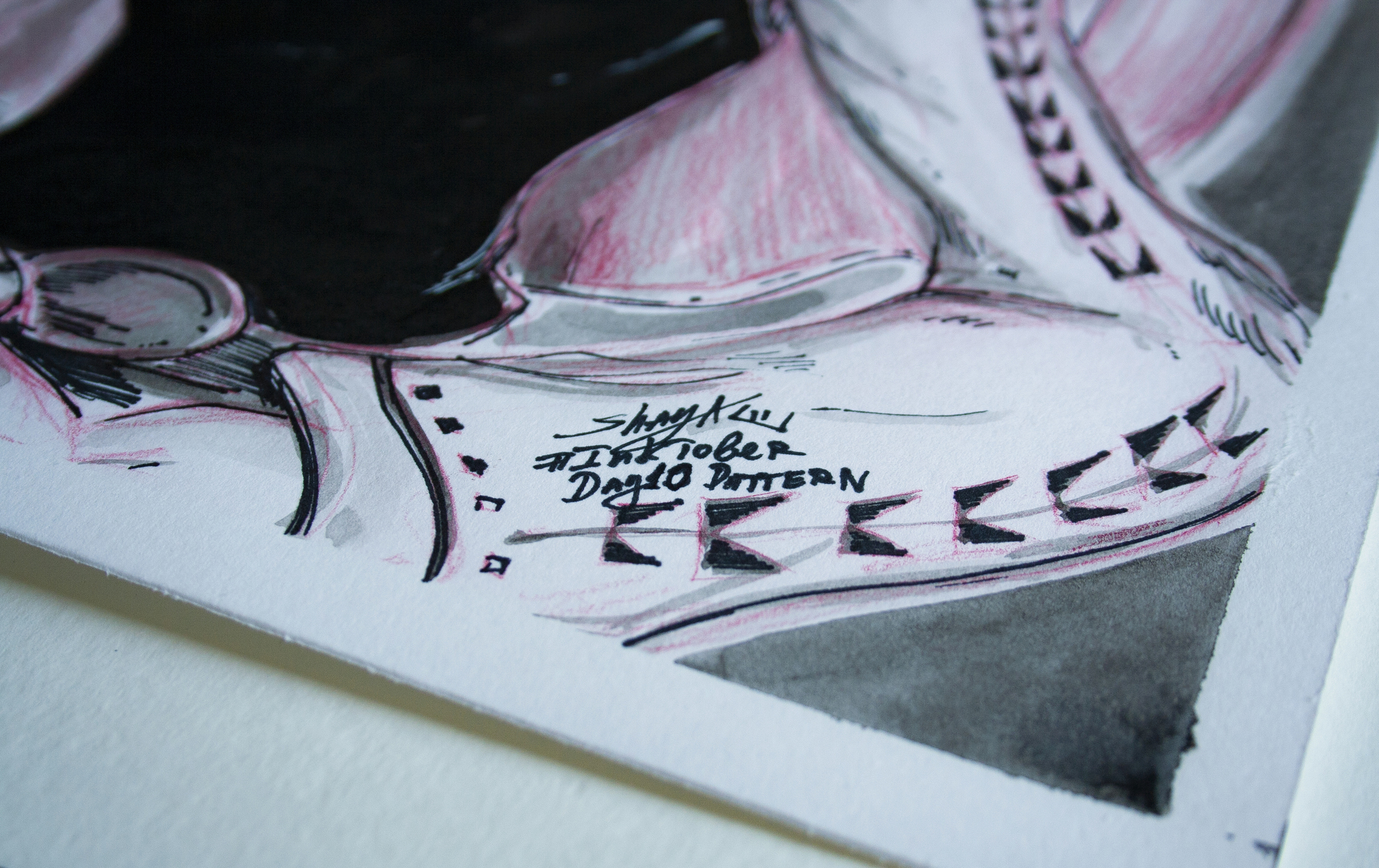 I hated those things! I really do! But it is perfect to draw them =] I used for this one Indian Ink, red pencil, Ink Pen and orange Ink for paper Fabriano Academia.