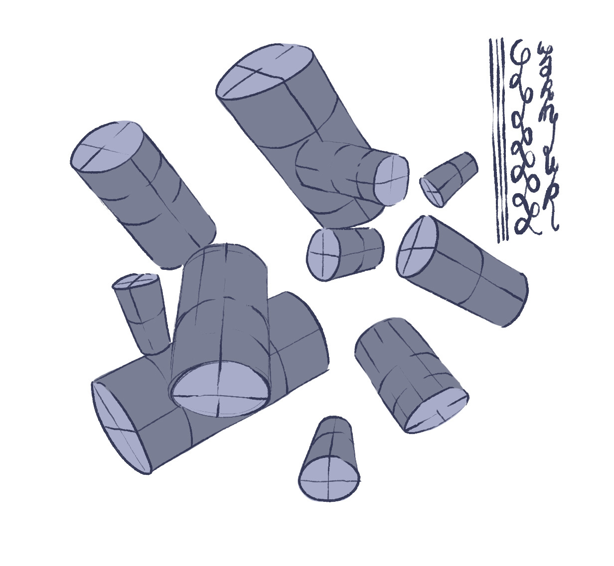 The cilinders and form look great! very 3D. It's all on point for the most part, you capture the manequin really well on each!