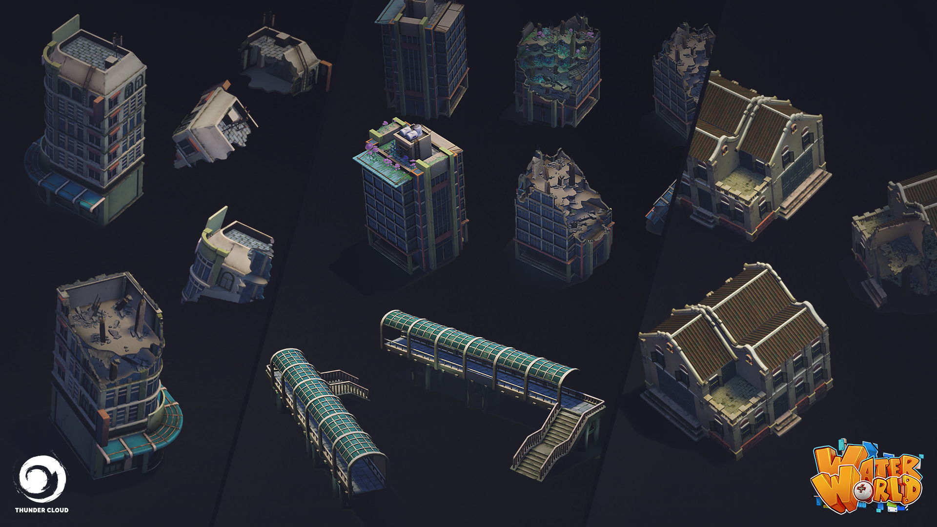 WaterWorld - Submerged City Modular Part 1Modular assets of the submerged city in the deep contaminated ocean in the Water World cinematic shot. We tried to bring the abandoned and vast destruction atmosphere into each modular asset to replicate a city that lies underneath the sea due to the rain of meteors for a thousand years