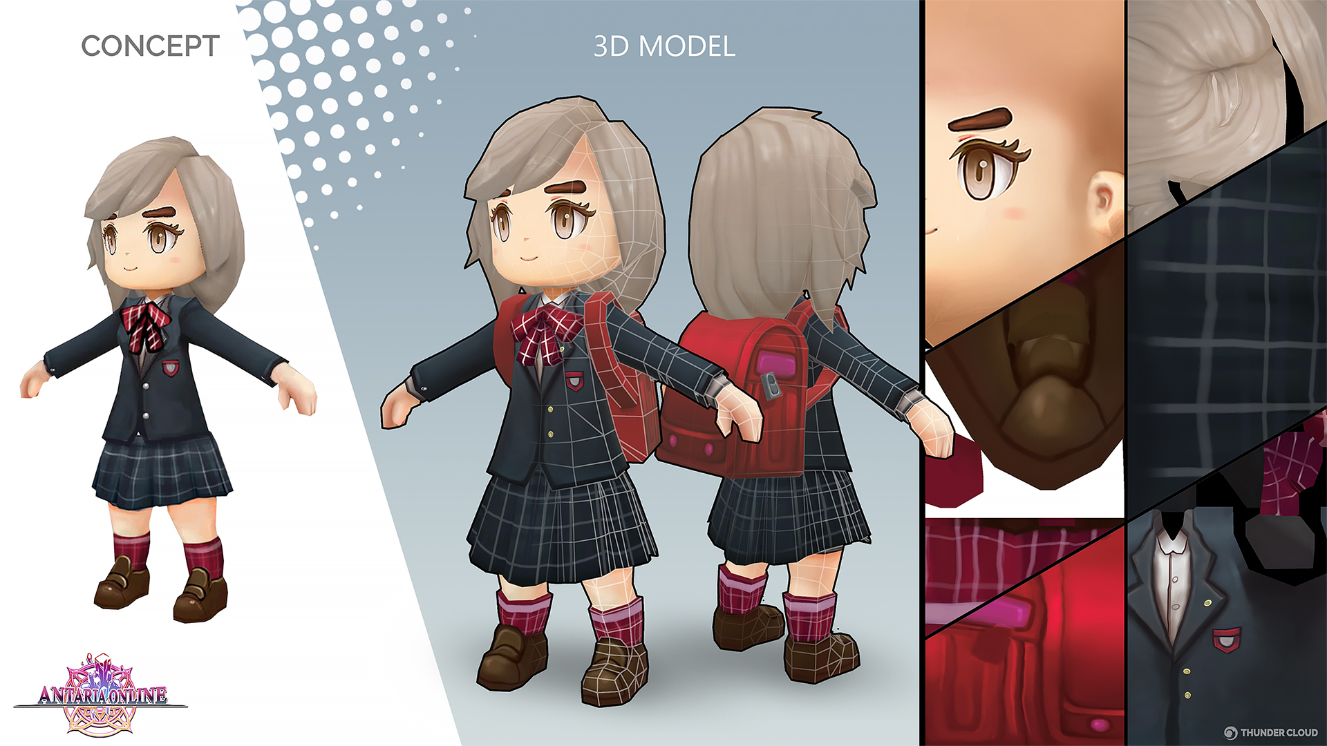 Antaria Online 3D Character Production - MMORPG GameAntaria Online has a system of many costume variations, we designed and create the tuxedo and back to school costumes set this Autumn season! 💪All are lowpoly ( under 1500 tris ) with handpainted texture !