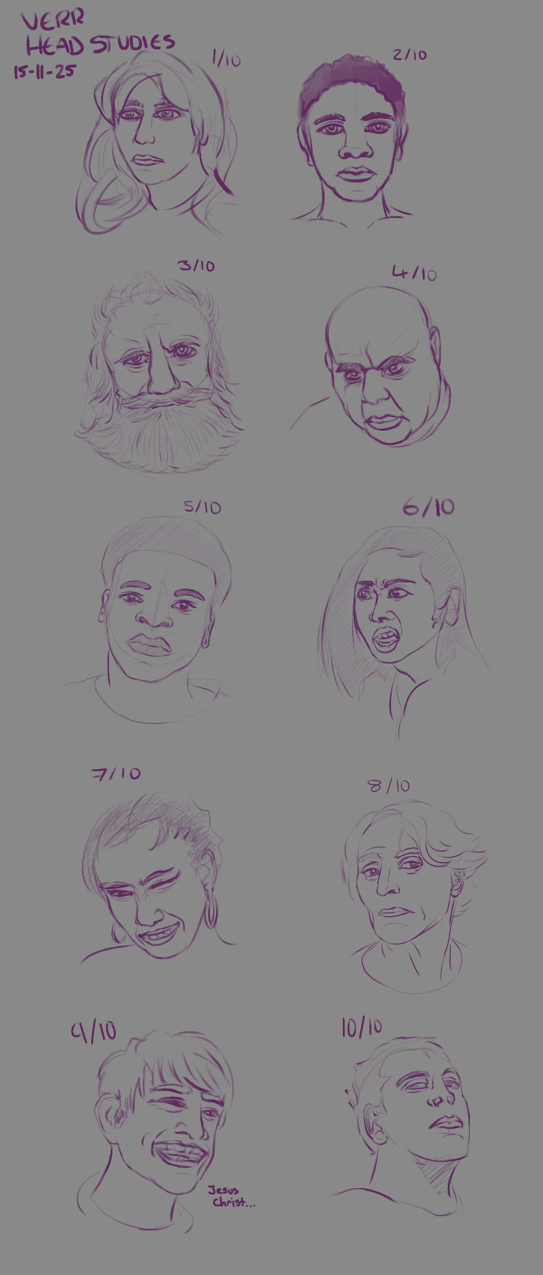 So overall I'm particularly happy with numbers 3, 4, 8 and 10 and considering it's rare for me to find myself happy with any of the heads I draw, that's an improvement! And it's almost half of the ones from this set! Banging!