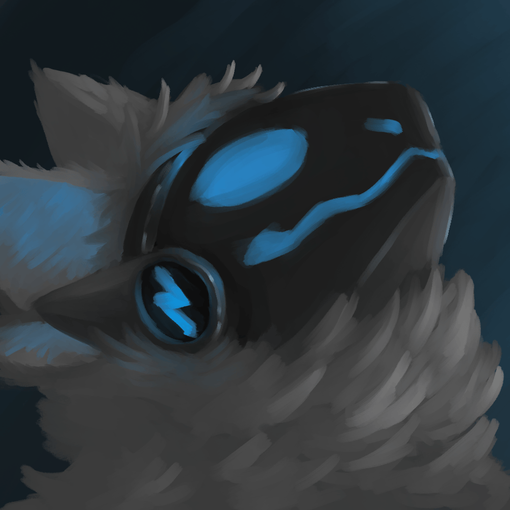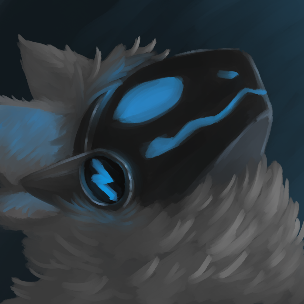 He is super fluffy. Unfortunately, the visor came out far, far more plastic-y than I had anticipated, rather than a glossy, glassy look. The recipient was very happy, but I would like to revisit this one and fix that for him once I've finished the next couple. And also make the visor a darker colour - I think the colour values on my tablet display are different to my other monitors, so maybe it doesn't look quite so dull on a better screen, because I swear to god it looks much richer and deeper in CSP.