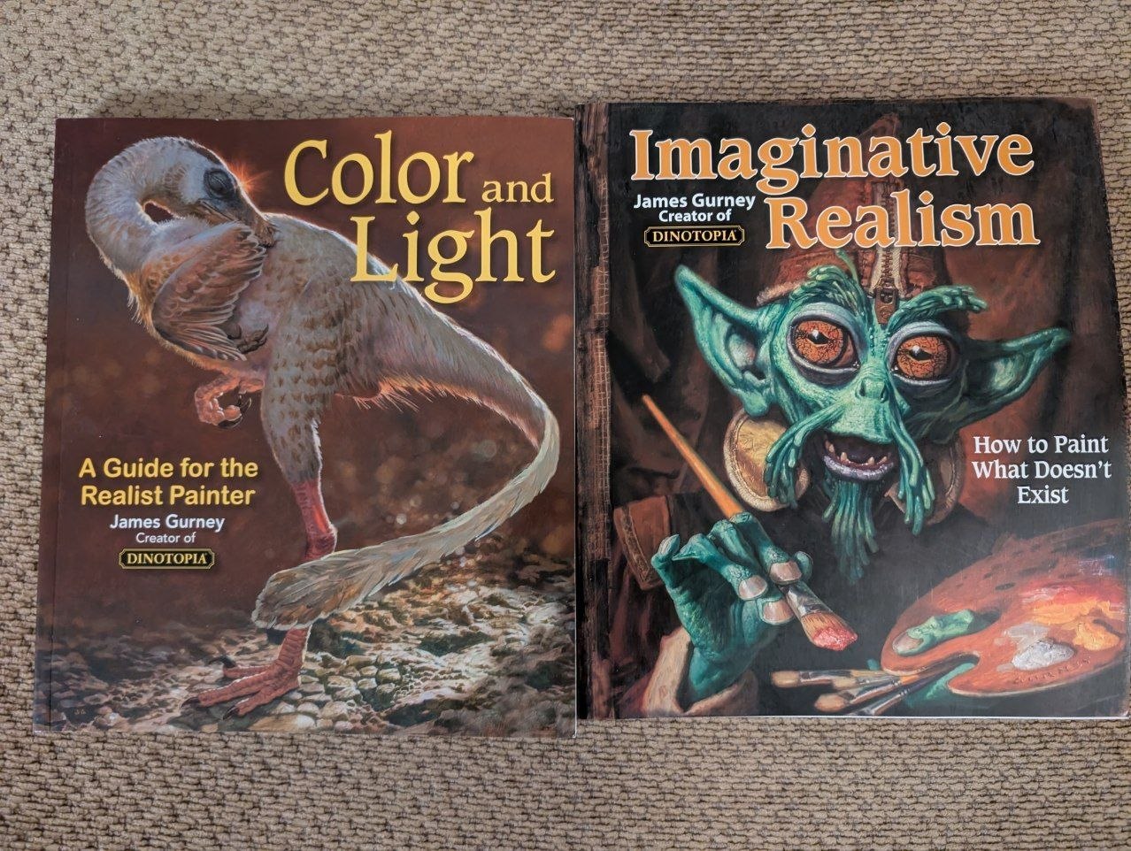 I bought a couple of books from the artist James Gurney mostly as something to read and just stay connected to art during the period of my burnout where I just wasn't capable of drawing. I'll be honest, I'd never heard of James Gurney (nor Dinotopia), but I really like his art and these were highly recommended by a mutual. I don't intend to go through and study all the images and try and copy or anything like that, just read them at a steady pace and maybe learn passively and just enjoy the ride. I've only started the colour and light one, but it's been good so far! So looking forward to continuing.