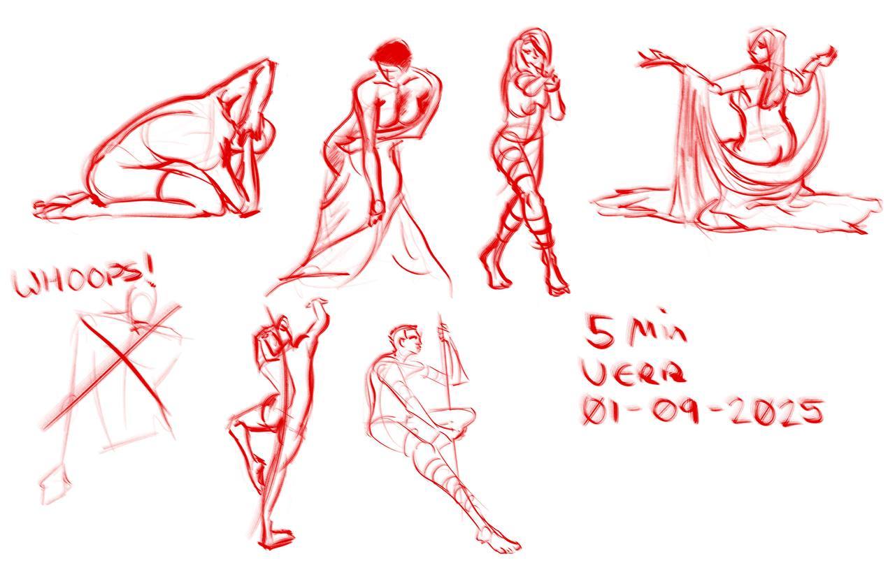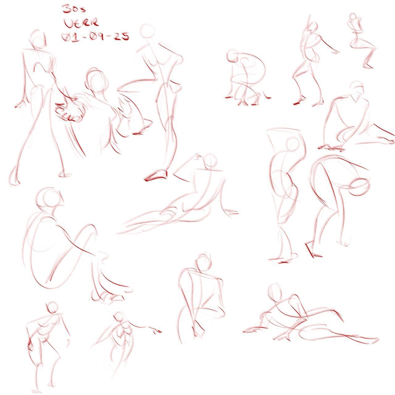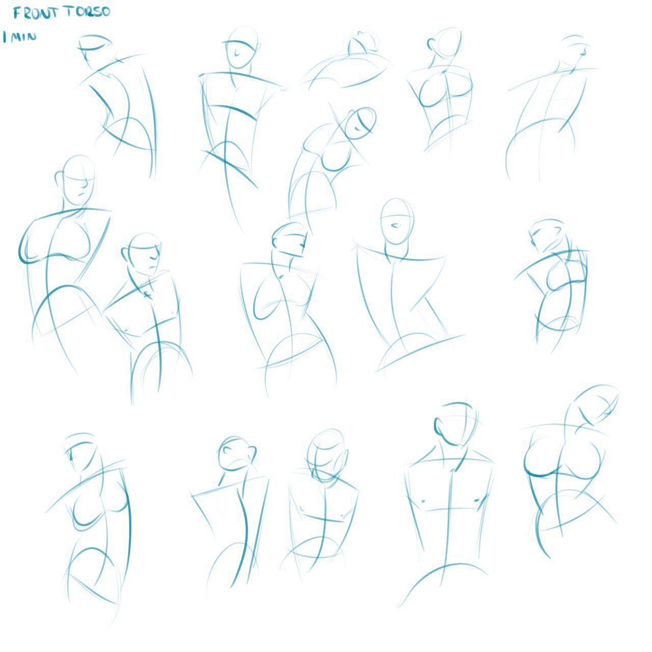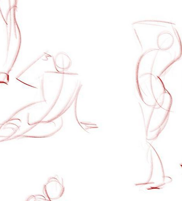 30sec to 1min - gesture action line, and height and scale of the figure - you may not finish every time- it is mostly warm ups.