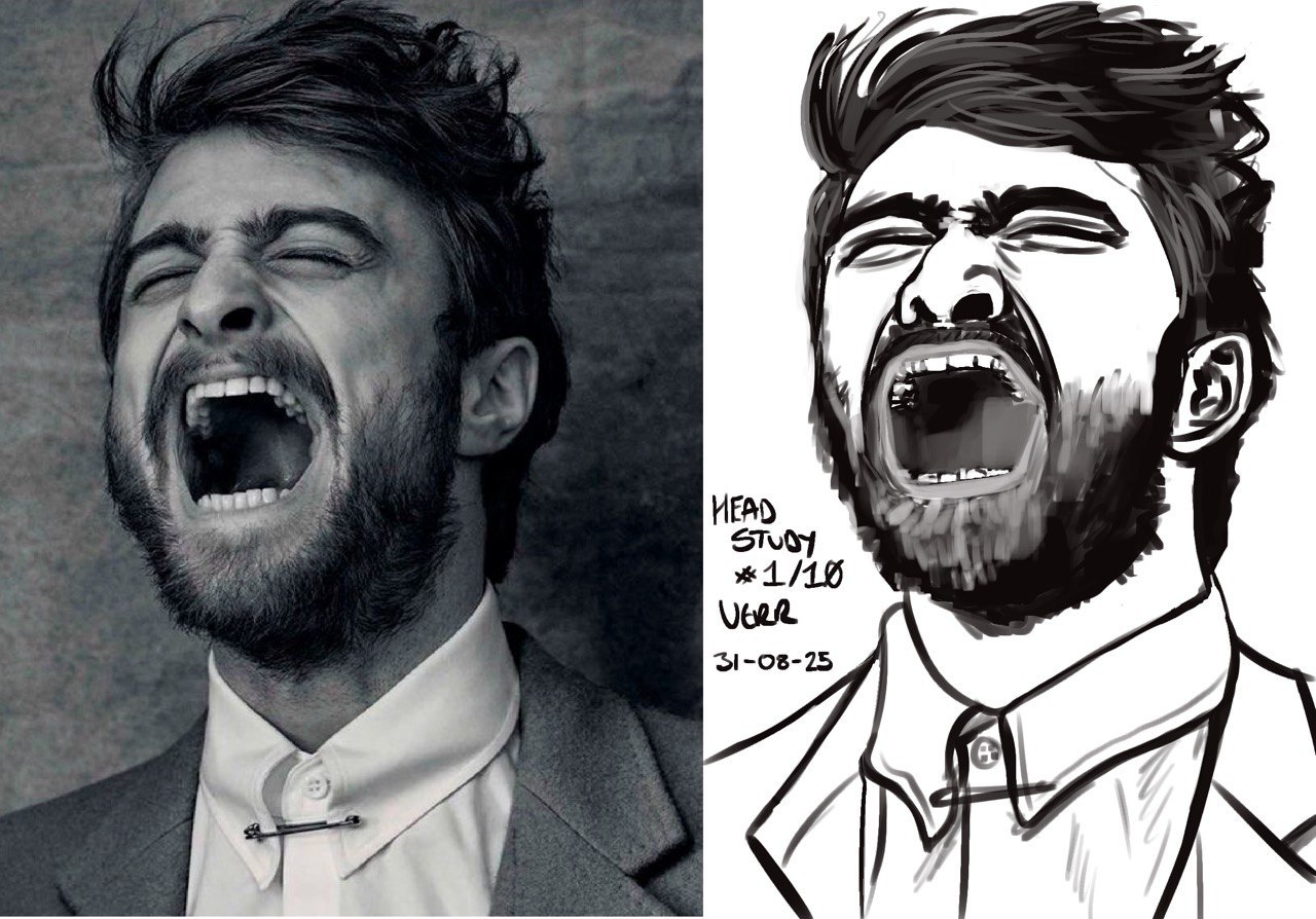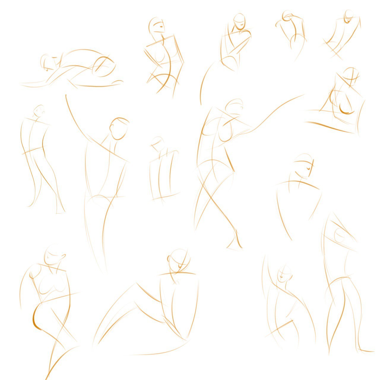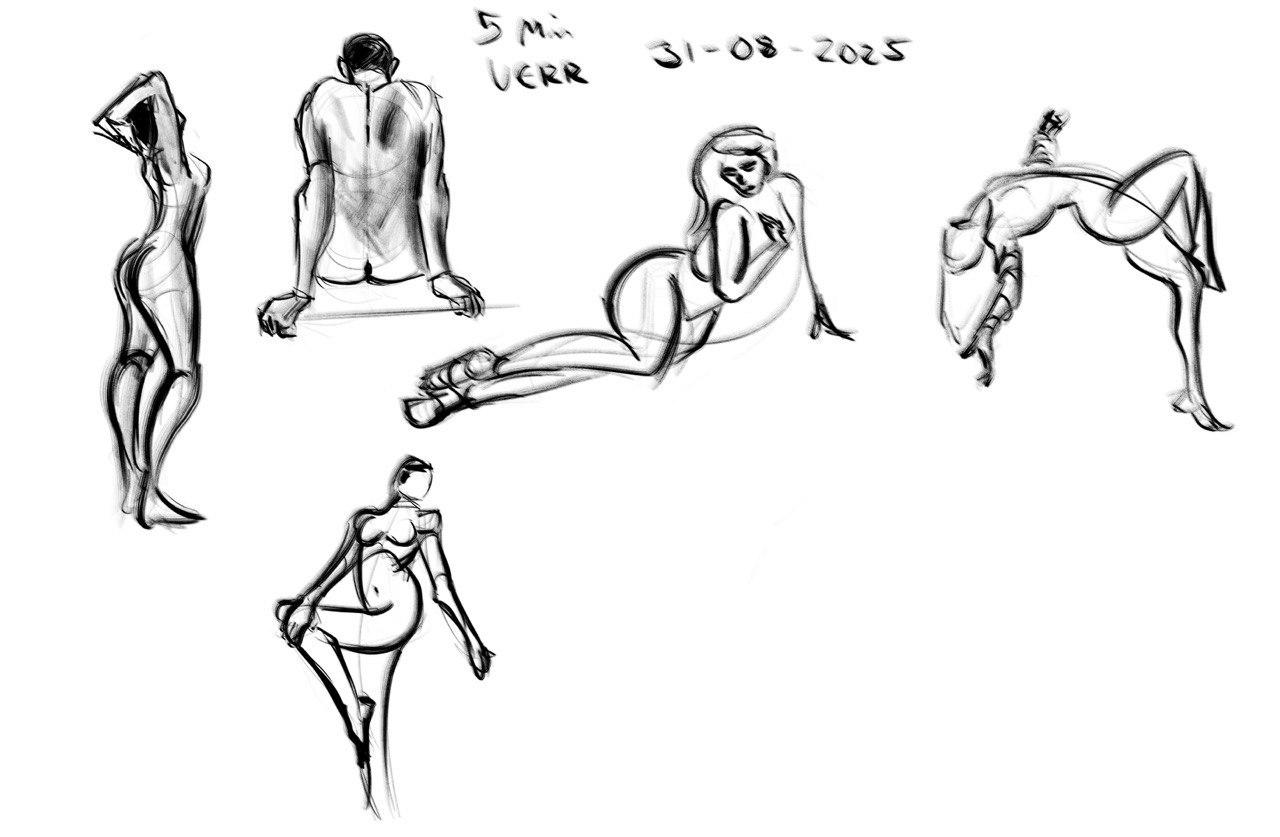 30sec to 1min - gesture action line, and height and scale of the figure - you may not finish every time- it is mostly warm ups.
