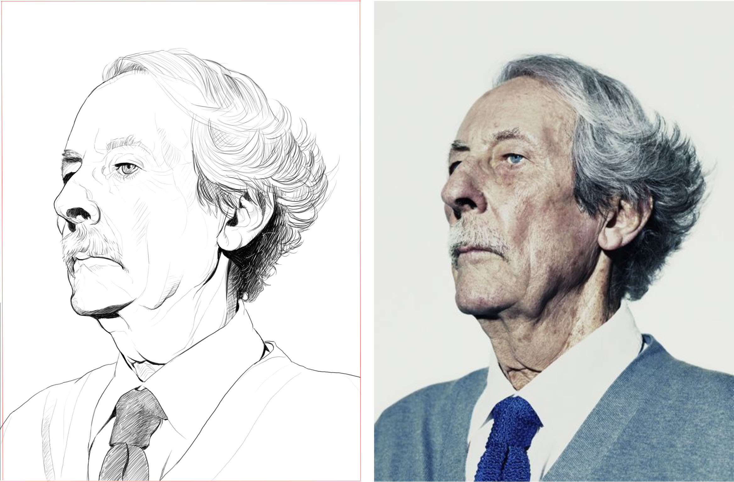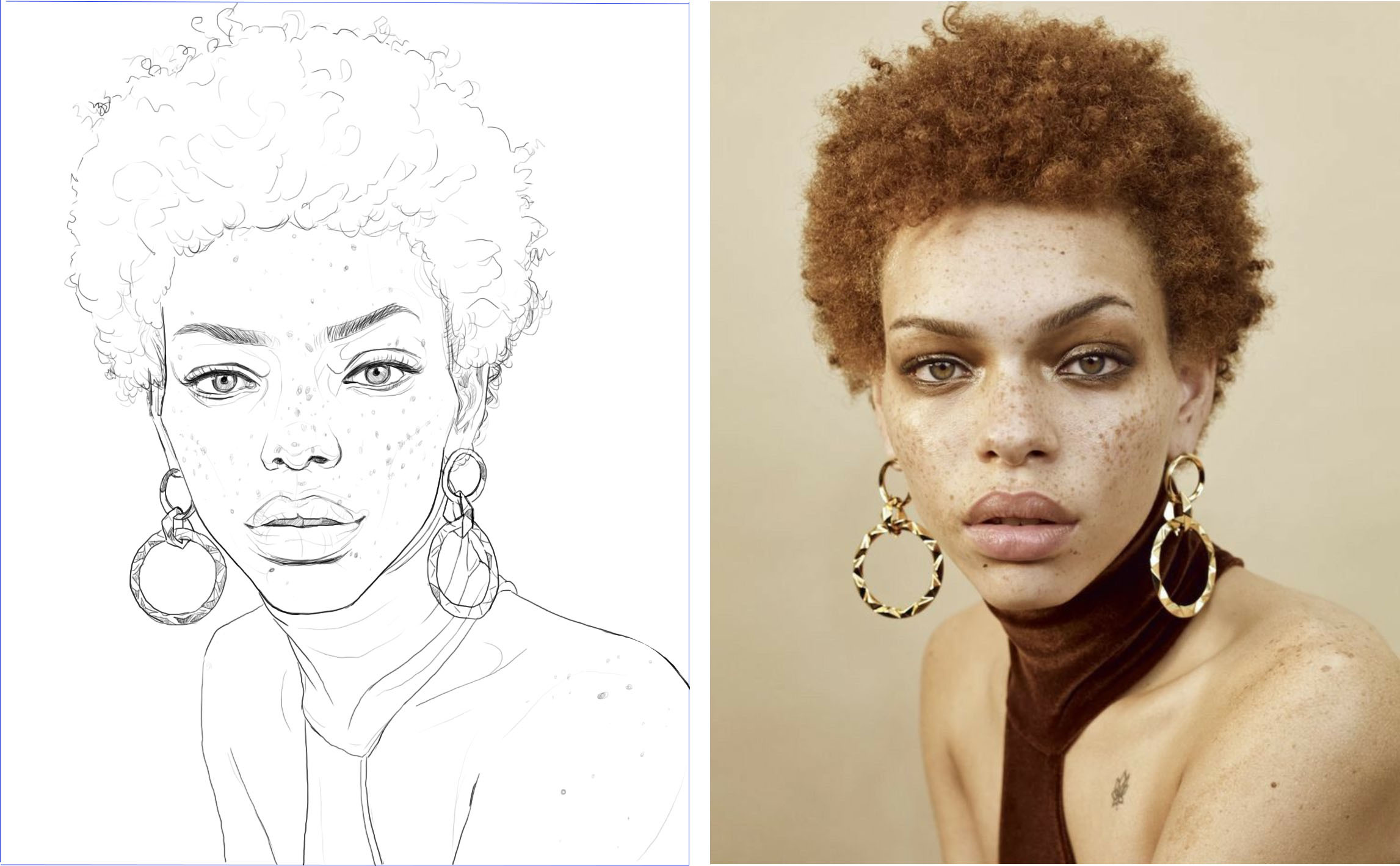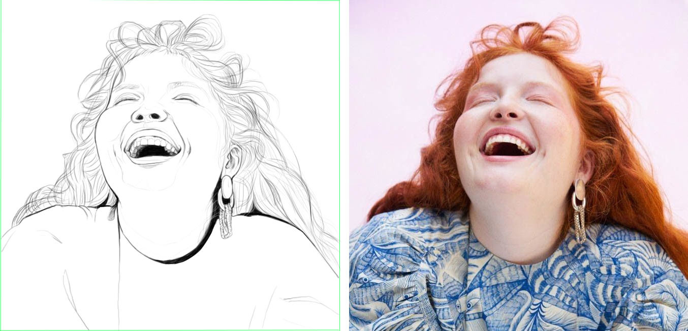 Now it felt more like studies, in stead of just copying something into a grid. As a total controlfreak this was terrifying and frustrating haha, yet a good practice. For the same reason to keep my perfectionism to a minimum, I used unknown models in stead of known actors and singers. This way it's less "disturbing" if the drawing deviates from the photo.