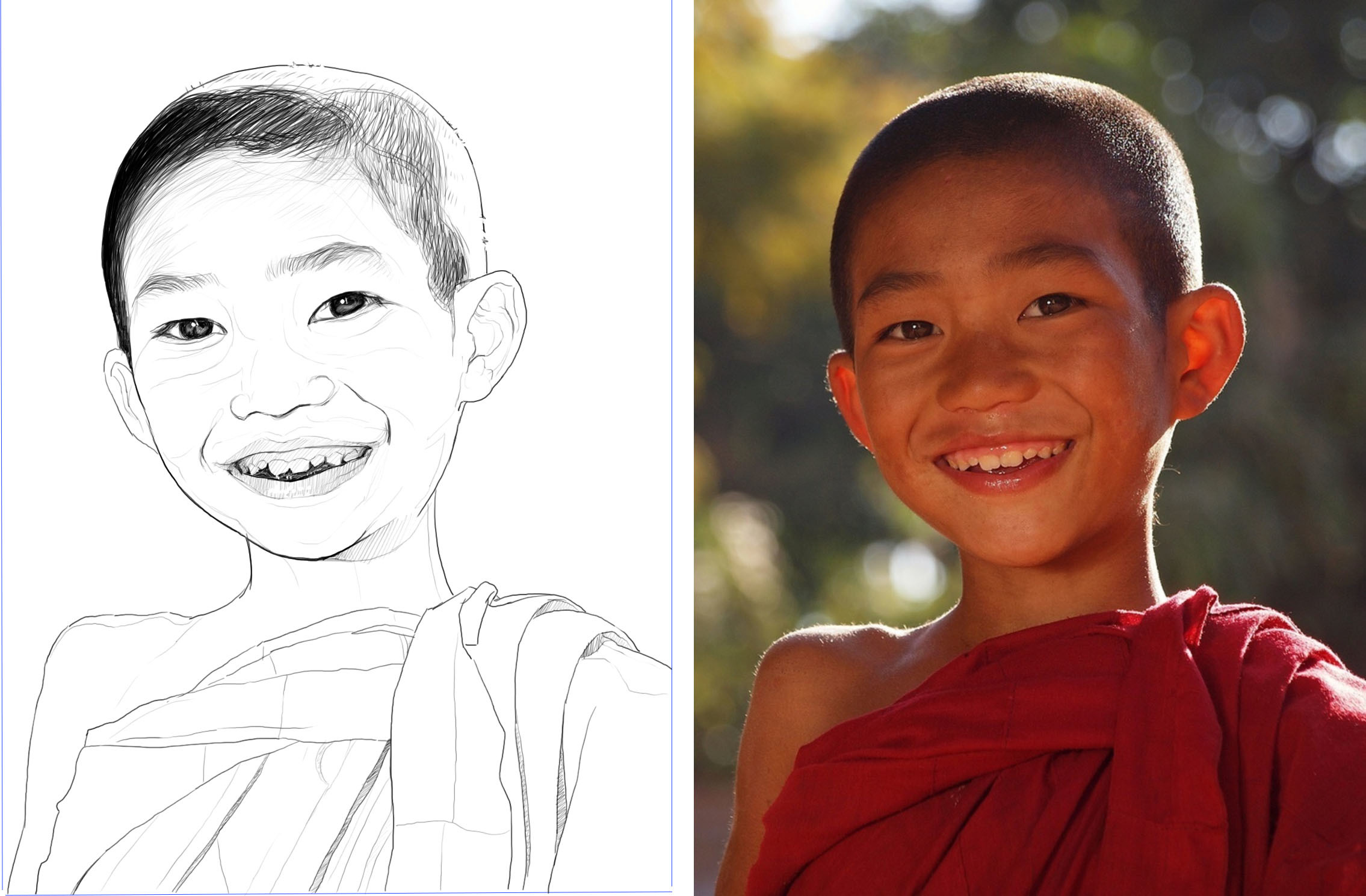 My second 10 head studies. I didn't use any grid, which I did use the first time (March 30). This round when I started sketching on an empty canvas, I tried to just focus on important shapes and lines and how they related to each other (for example, the line of the chin, the space between that line and the mouth, all the negative space, etc.)