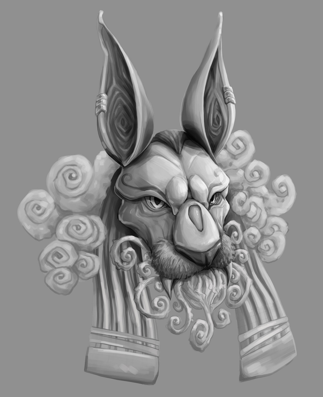 I used Anubis and Komainu as inspiration; mythical dog-like creatures from Ancient Egypt and Japan.